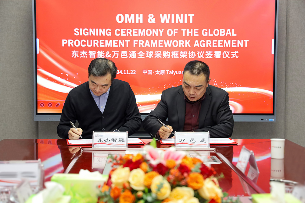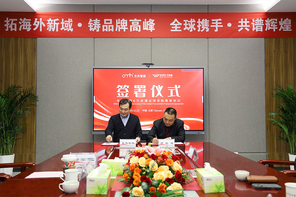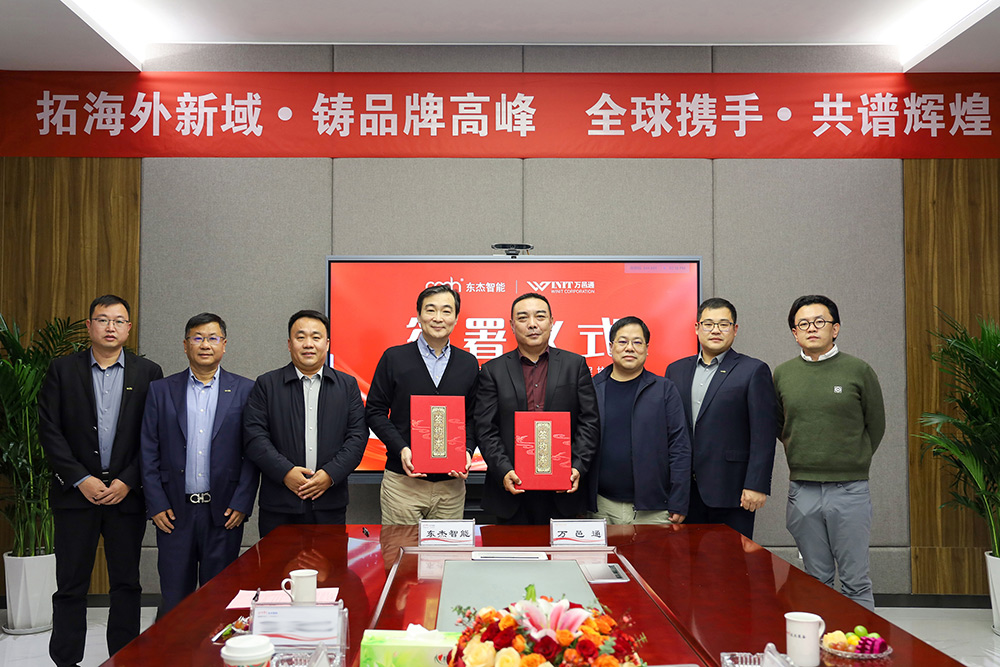 簽署儀式上,雙方代表在熱烈的掌聲中完成了合同簽署,并合影留念。這次簽署儀式的成功舉行,標志著東杰智能與萬邑通的合作進入新階段,也為雙方未來在更多領(lǐng)域的合作奠定了堅實的基礎(chǔ)。