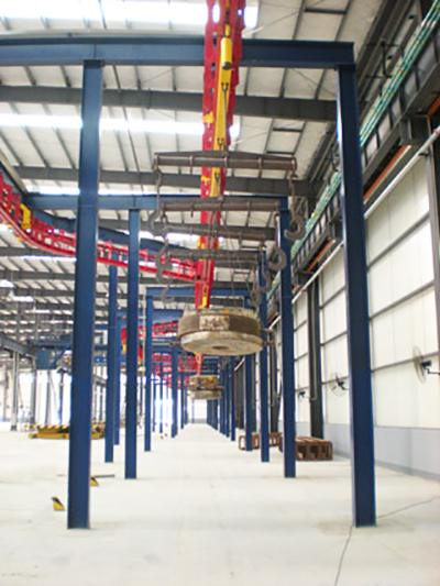重型積放式懸掛輸送機(jī)是我公司定型優(yōu)質(zhì)產(chǎn)品。其系統(tǒng)主要由驅(qū)動(dòng)裝置、張緊裝置、軌道系統(tǒng)、牽引鏈條、承載車組及載荷梁等組成。該輸送系統(tǒng)已在工程機(jī)械、冶金等行業(yè)得到成功應(yīng)用,獲得用戶一致好評(píng)。