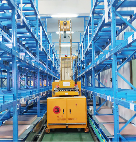 通過車體上配置的堆垛機(jī),與輸送線以及倉儲貨架對接應(yīng)用