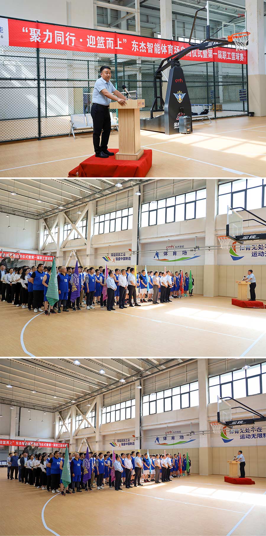 近日,一場盛大的“聚力同行·迎籃而上”東杰智能體育場啟用儀式暨第一屆職工籃球賽決賽在東杰智能總部體育場璀璨啟幕?;顒佑杉瘓F營銷中心副總經理侯晉雷先生主持,集團總經理王振國先生攜高管團隊——副總經理朱忠義、郝志勇,董事會秘書張新海,以及總經理助理劉云峰等親臨現場,共同見證了這一歷史性時刻。